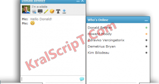 Site içi facebook tarzı online olan kişiler tarafından kullanılabilecek ücretsiz Chat Scripti sitenin alt kısımında bulunan sitedeki kişiler tarafından kullanılabilecek süper bir sohbet sistemi RAR PASS : www.kralscript.com Demo Adresi Tıklayınız Dosyayı indir Tıklayınız